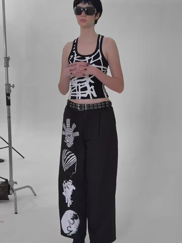 Regata em ribana com modelagem regular, tecido algodão 100%. Estampa pixo full print branca aplicada em silk de plastisol.